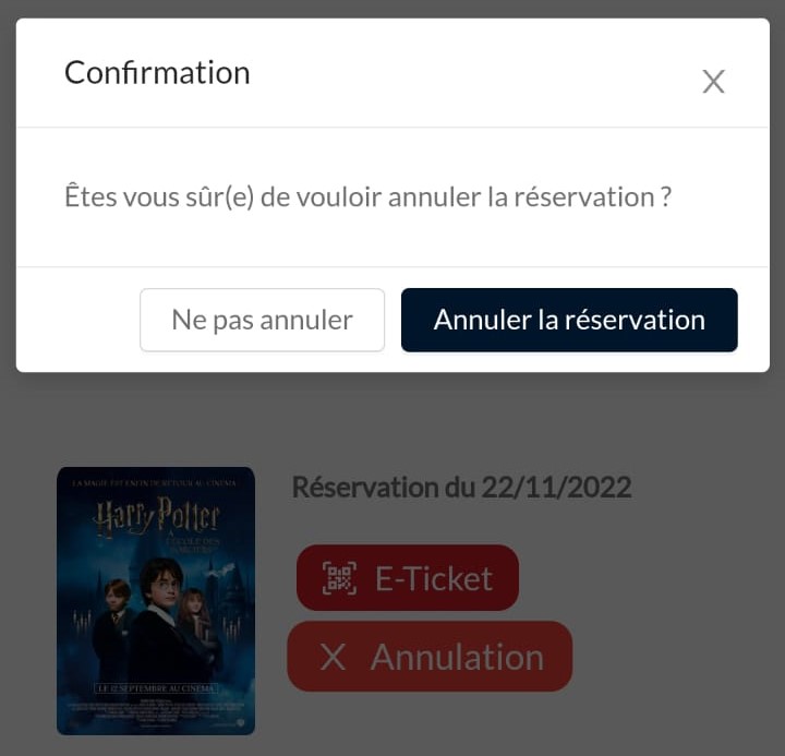 - soit le film commence dans moins de 30 minutes, et donc la réservation en ligne est terminée, vous devez aller en caisse pour acheter une place.